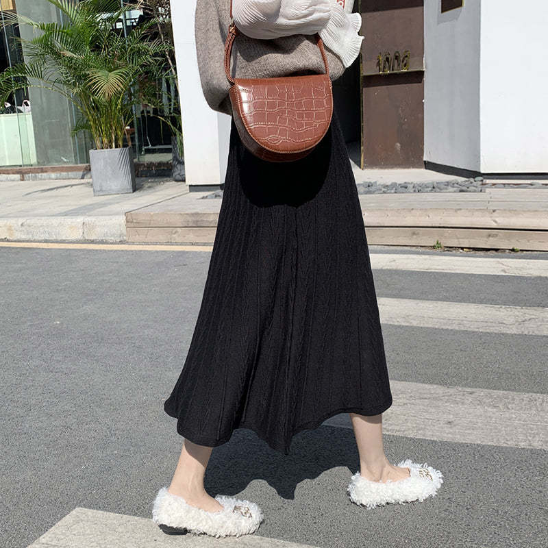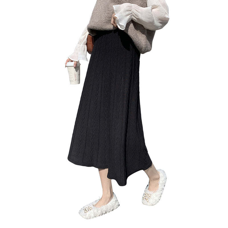 Knitted Skirt Mid Length Winter With Sweater Skirt Autumn Winter Long Skirt Versatile Winter Skirt