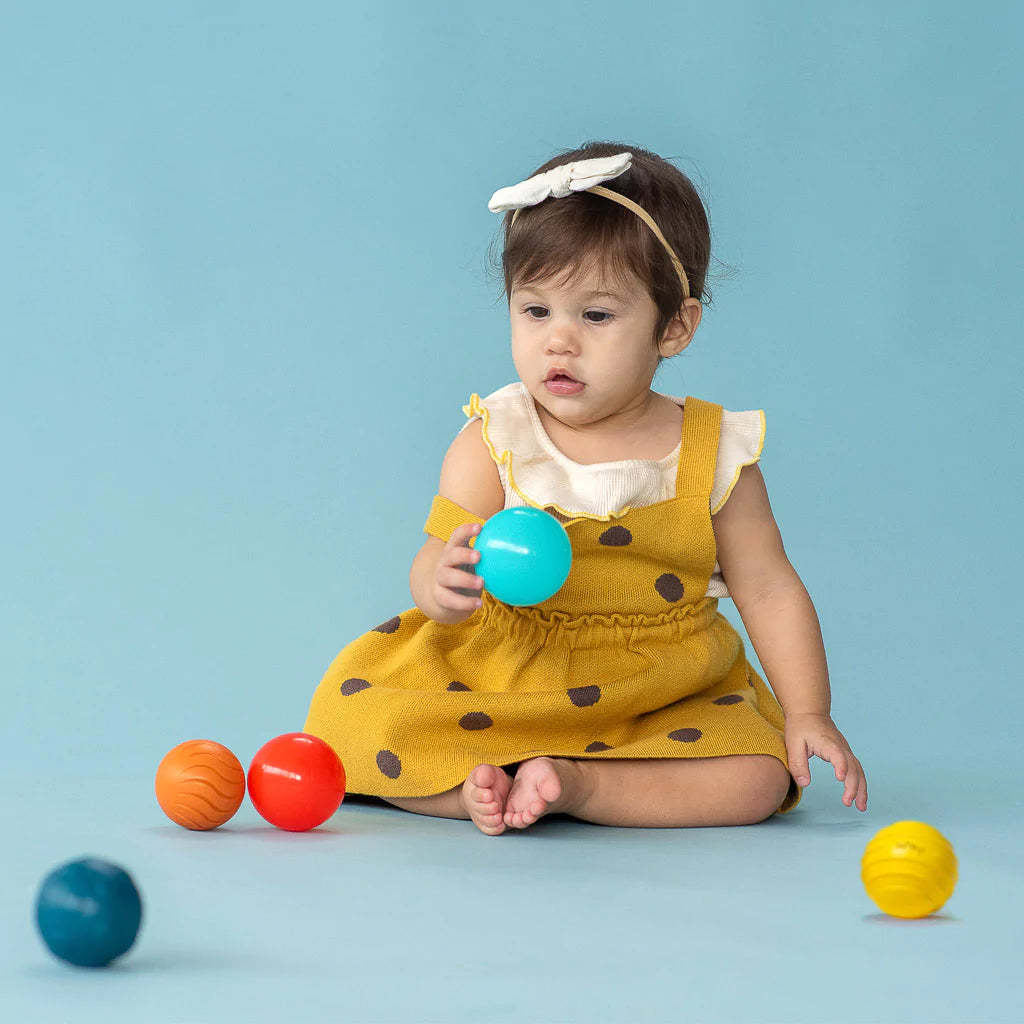 - Playing with the 3 textured balls helps promote baby’s sensory development.