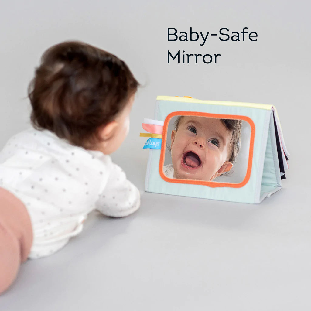 - Side 1: High contrast colors, baby safe mirror and face drawings allow baby to focus on one image at a time and minimize stimulation. Helps develop baby’s senses and emotional intelligence.