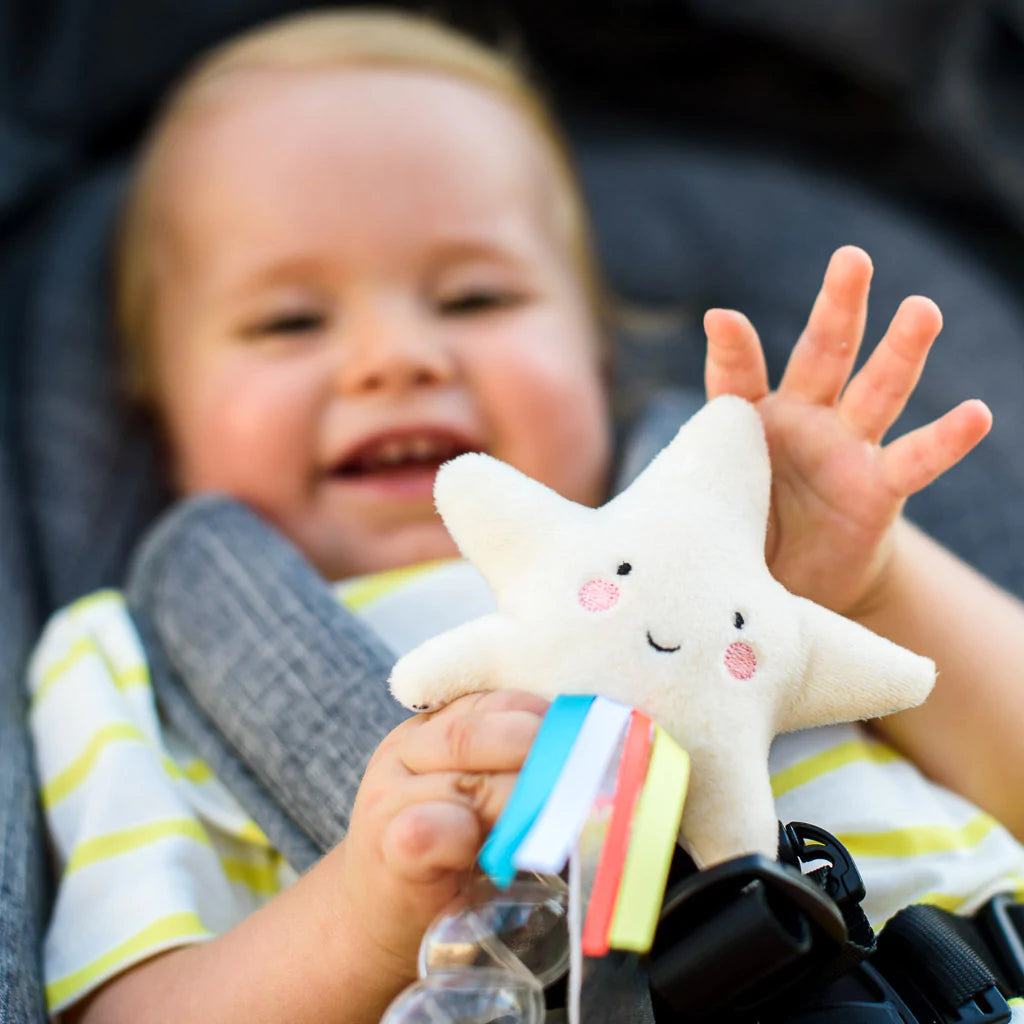 - Easy to take along with an easy-to-grip design, your baby can use the star Rattle easily, developing their grabbing abilities as they play