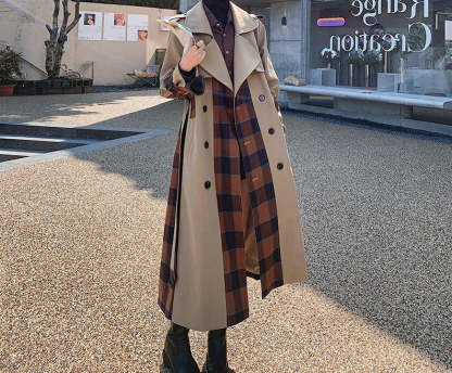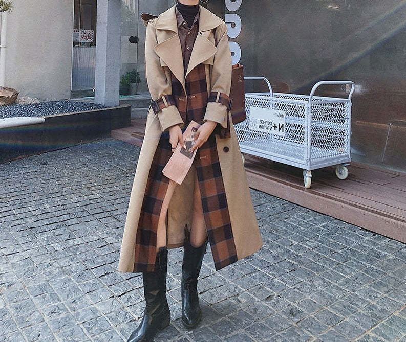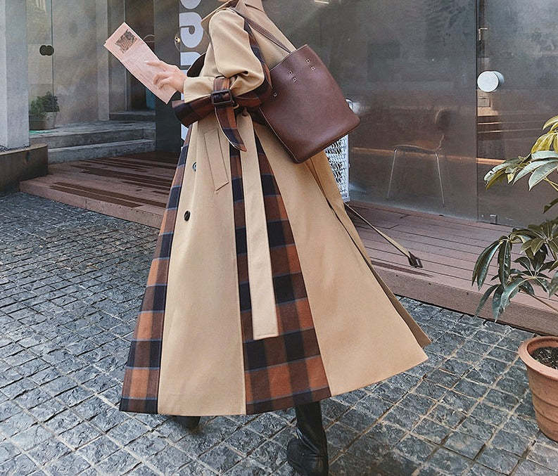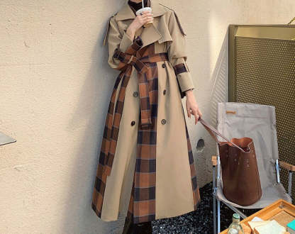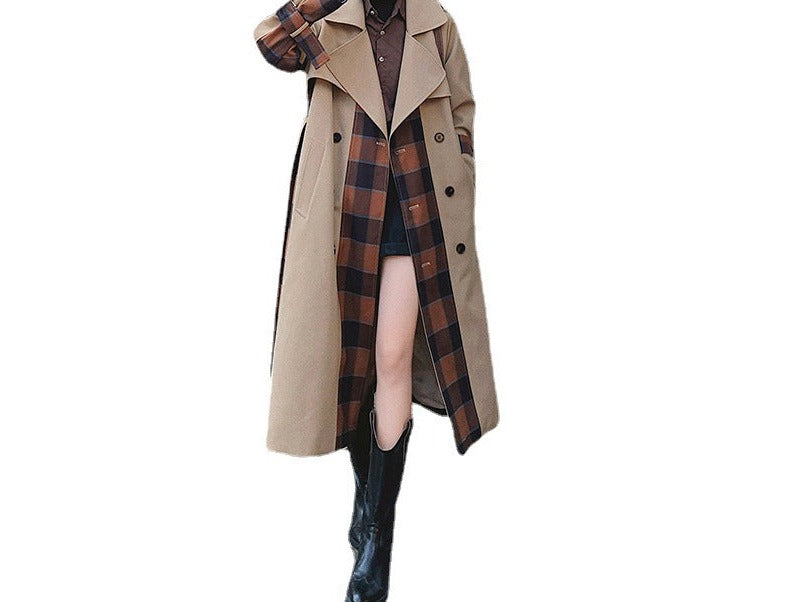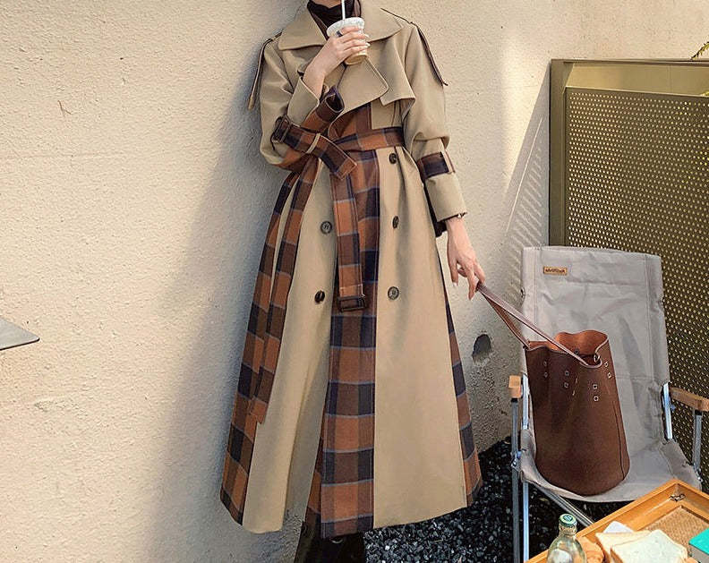 Plaid Stitching Khaki Windbreaker Women's Small Jacket