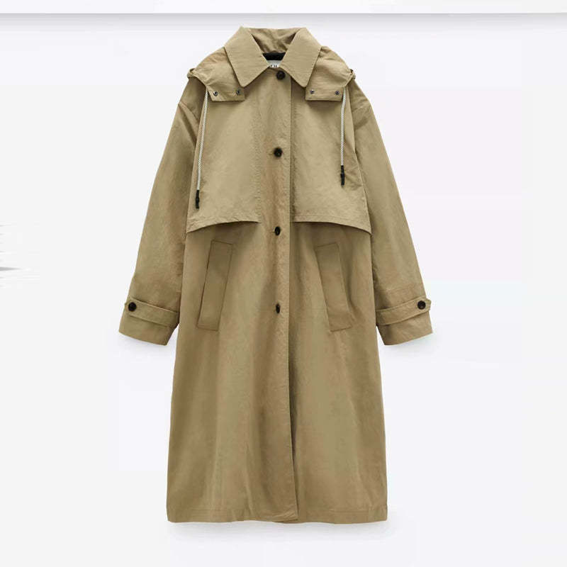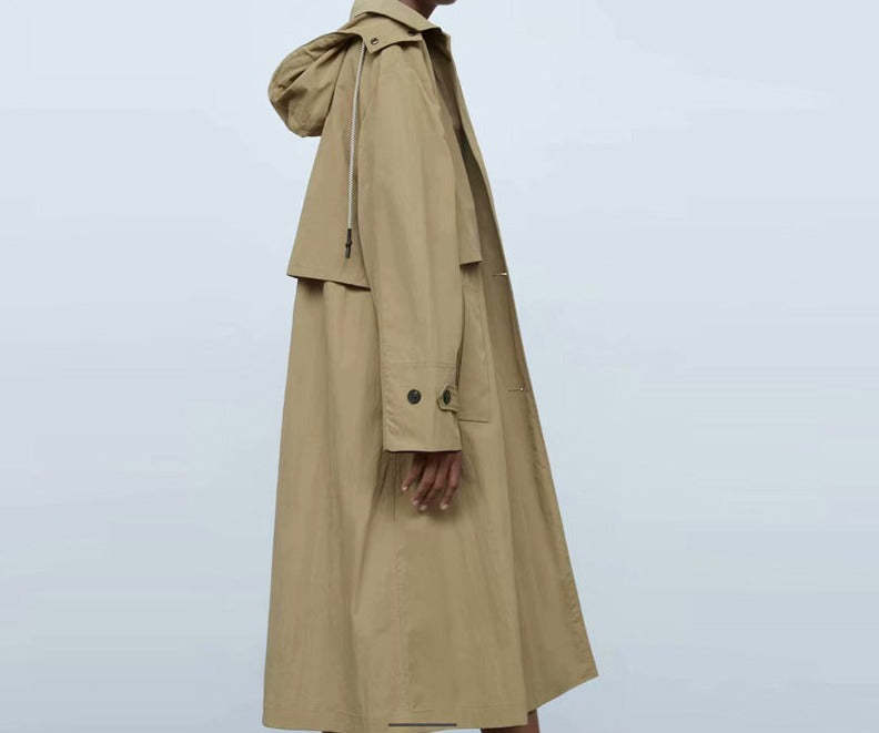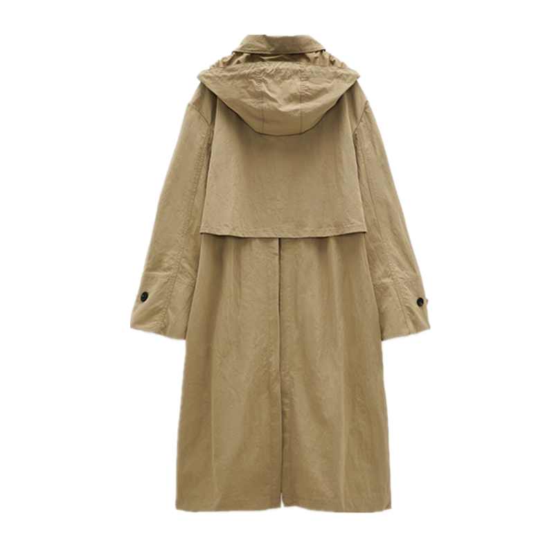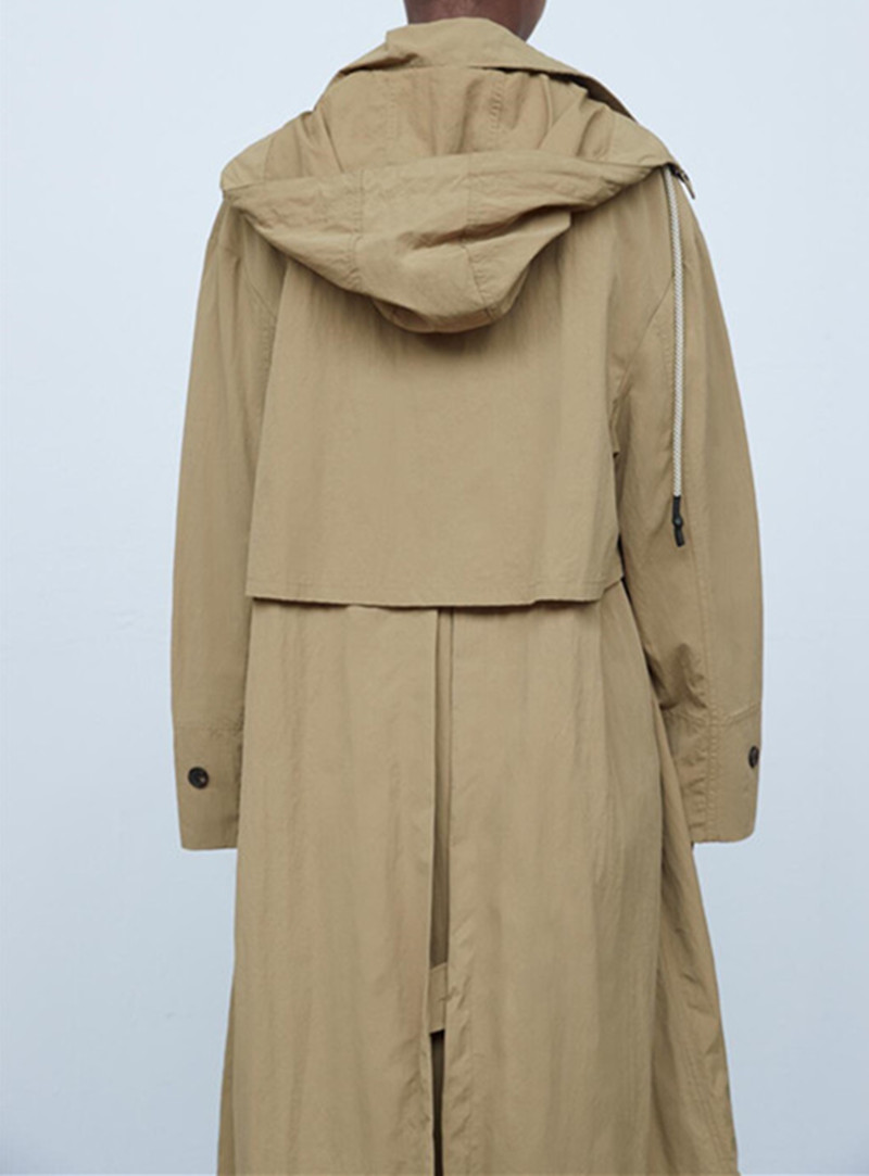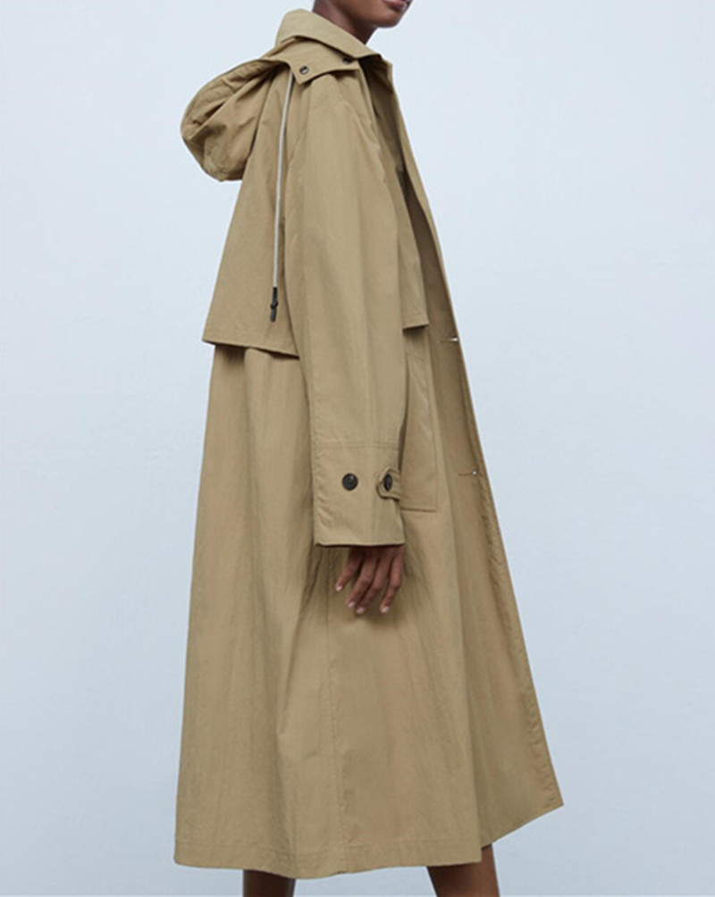 Single Breasted Khaki Solid Hooded Windbreaker