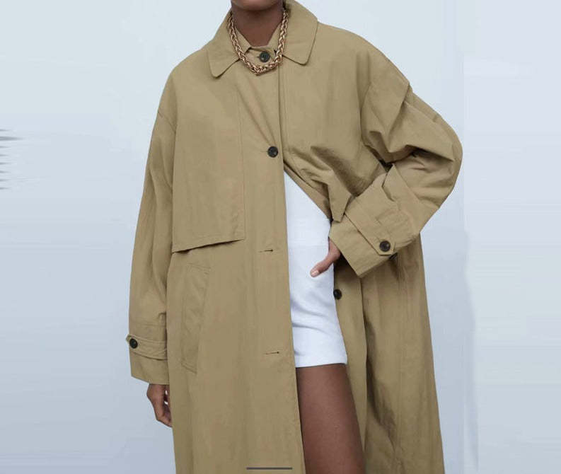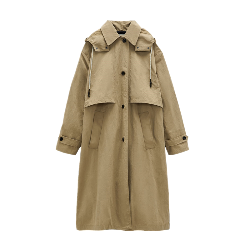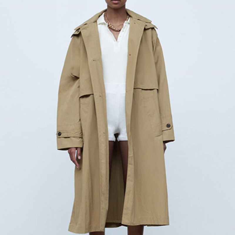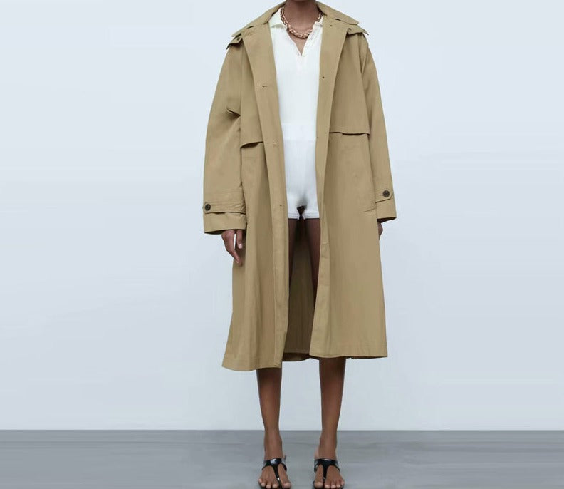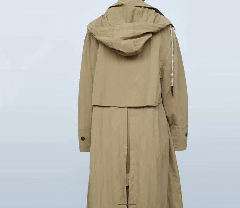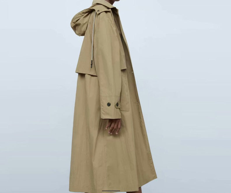 Single Breasted Khaki Solid Hooded Windbreaker